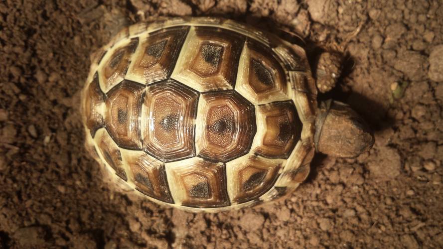 Hopefully it will get going in the next few days. If you keep accurate weekly weight checks, you will be able to monitor growth, this will help you decide how long to hibernate it. At that age, hibe is best started in January. Thanks for the pic - it has unusual markings for a hermanns. Can you post a pic aiming straight down on his carapace please Leanne ? Were you given any documentation when you acquired it. I use the term "it" as they can't be sexed 'til about 4yrs old. Tom | |