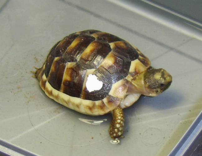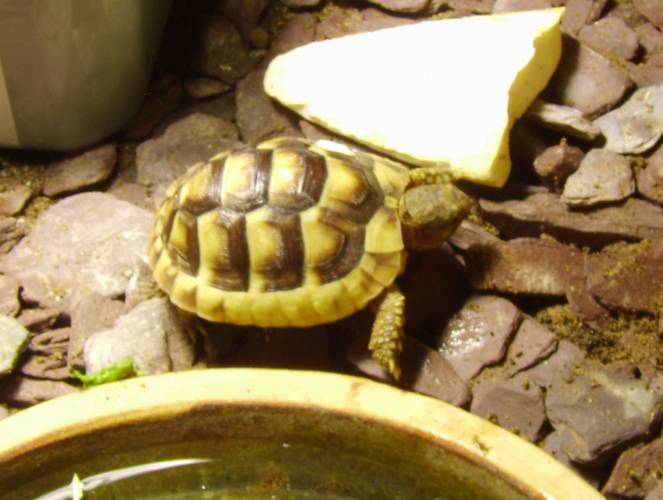 Hi to all forum users. This is my first posting and I apologise now about the length. They won’t all be like this – honest! Fairly new to tortoises, having only been a tortoise keeper for just over a month. Strictly speaking my wife is the tortoise keeper as they were her birthday present, but we share the duties and I’m completely fascinated. Our pair of Marginated hatchlings came from breeders (TPG listed) near Looking at the garden centre’s website more recently they are now offering Hermans and Spur Thighed for sale and they’ve also opened an extended pet supplies shop, expanding on their aquarium business. I returned there today to see if conditions had changed for the tortoises and to ask some questions. I found that in one glass fronted vivarium (no more than about 600 x 400mm) there were six baby Hermans on a bark substrate. In another similar vivarium there was one juvenile Horsfield on a sand-like substrate. Neither vivarium had a water bowl and the Hermans had a few bits of cabbage leaf on the ground. They also now have a few lizards and snakes in vivariums for sale (although the snakes were also inside plastic boxes). I decided to pose as a potential (tortoise ignorant) customer and was directed to the `best person’ (who I’ll refer to as `M’) to speak to about the tortoises. M advised that the tortoises were not ready for sale yet as they were too small and still waiting on their certificates. M said it was possible to reserve one and that the certificates should arrive in a week or so. M also advised that if I bought one I would need to get it micro-chipped once it reaches a certain size. I asked where the ones on sale came from and M didn’t know. M did say that they didn’t come from the wild and that it was allowable for tortoises bred in Europe to be sold in the M recommended orchid bark as the best substrate partly because it’s too large for the tortoise to eat. I mentioned that the Horsfield was on sand and M agreed that a soil based `bedding’ could be used, but that tortoises like to dig and it makes their shells messy – hence M preferred the bark. I noticed that there was one small bag of tortoise substrate on sale which looked to be soil based, the rest was bags of sand and bark chippings. On feeding M suggested cabbage, lettuce, carrots, weeds (nothing specific), and occasional tomato and fruit. M also suggested dry tortoise pellets (which they sell) for when fresh foods aren’t to hand, and giving of vitamin supplements and possibly cuttlefish bone. For housing M showed me two vivariums, a wooden one enclosed on all sides and top with sliding glass doors and another with glass sides and a metal mesh top. The suggested size was about 600 x 400mm and M recommended the glass sided version where the lighting and heating could be placed on top of the mesh. M talked about putting the tortoise outside when it warms-up and then bringing it back indoors through the winter. I asked if it wasn’t possible to hibernate it and M said that it was but not for the first few years, and then only after having taken it to a vet to be weighed and checked that it had eaten sufficient during the summer. M mentioned a couple of times that they had books on tortoises for sale, but I didn’t check them out as I had no intention of buying. It’s worrying that they must have sold some tortoises since we first saw them on sale (and possibly before that). Those poor souls don’t stand much chance if this is the kind of advice that’s been given out. As has been suggested to earlier postings I’ll send the appropriate care sheets to the garden centre, along with a plea that they stop selling, or at least keep them in correct conditions and provide correct advice. The other major concern has to be – where are they getting these animals from? Cheers Russ | |